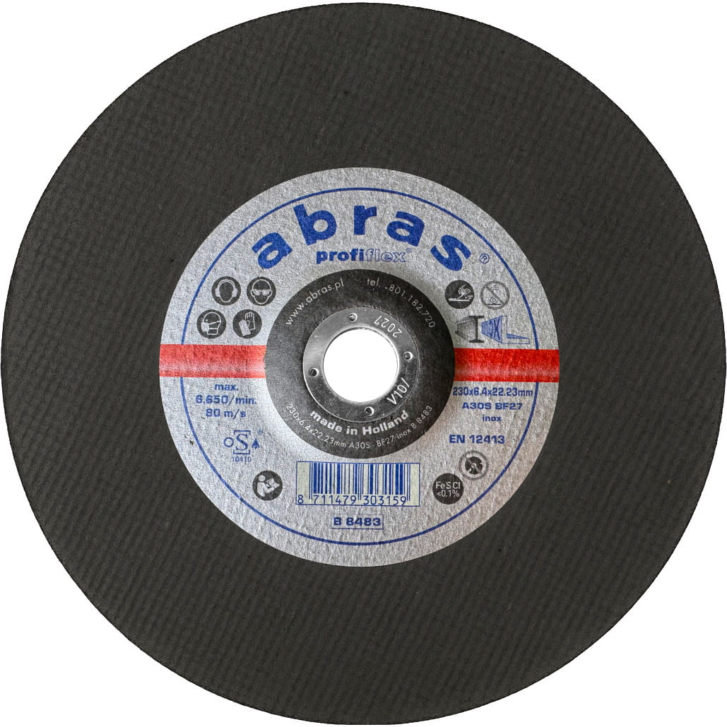 ABRAS-hiontalaikka 230×6,4×22,2 A30R BF27 Inox Sprint on premium-työkalu, joka on suunniteltu vaativiin työstötehtäviin ruostumattomalla teräksellä (Inox), hiiliteräksellä ja rakenneteräksellä.