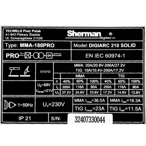 Sherman DIGIARC 210 SOLID Saldatrice inverter