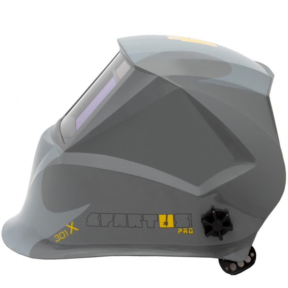 Casco per saldatura SPARTUS® Pro 301X progettato per proteggere gli occhi e il viso del saldatore dalle radiazioni nocive e dagli spruzzi di saldatura. Perfetto per la saldatura TIG, MIG/MAG e MMA. Inoltre, ha una funzione di macinazione.