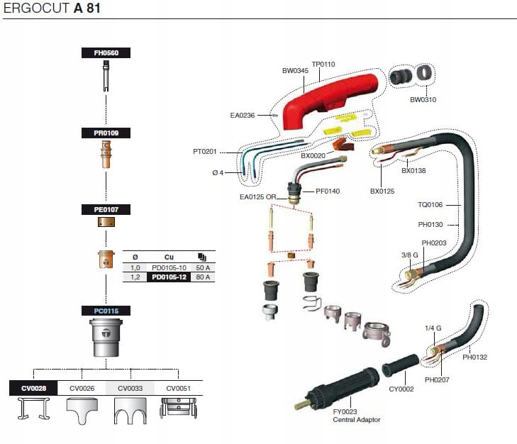 Il manicotto della torcia al plasma A-81, che viene utilizzato nei tagliatori al plasma.