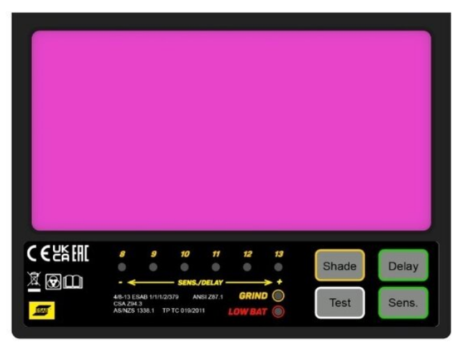 - Pulsante esterno per attivare la modalità smerigliatura — modalità con livello di oscuramento DIN 4