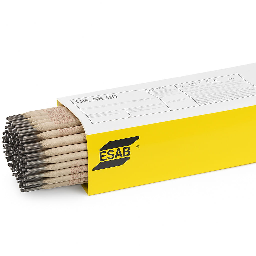 ESAB OK 48.00 è un elettrodo basico di tipo LMA affidabile, progettato per la saldatura di acciai a basso tenore di carbonio e basso legati. Fornisce un metallo di apporto di alta qualità, con grande duttilità e resistenza alle cricche. Ottimo per saldature in posizione forzata, in particolare in verticale ascendente. Alta tolleranza alla variabilità chimica del materiale base – ideale per strutture sollecitate.