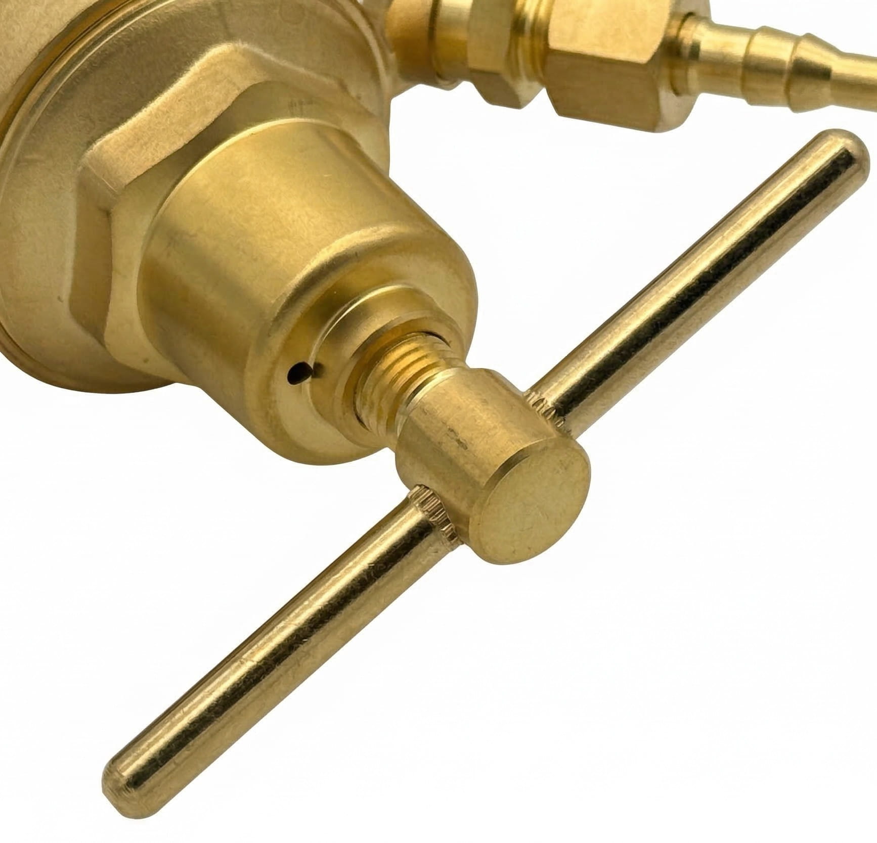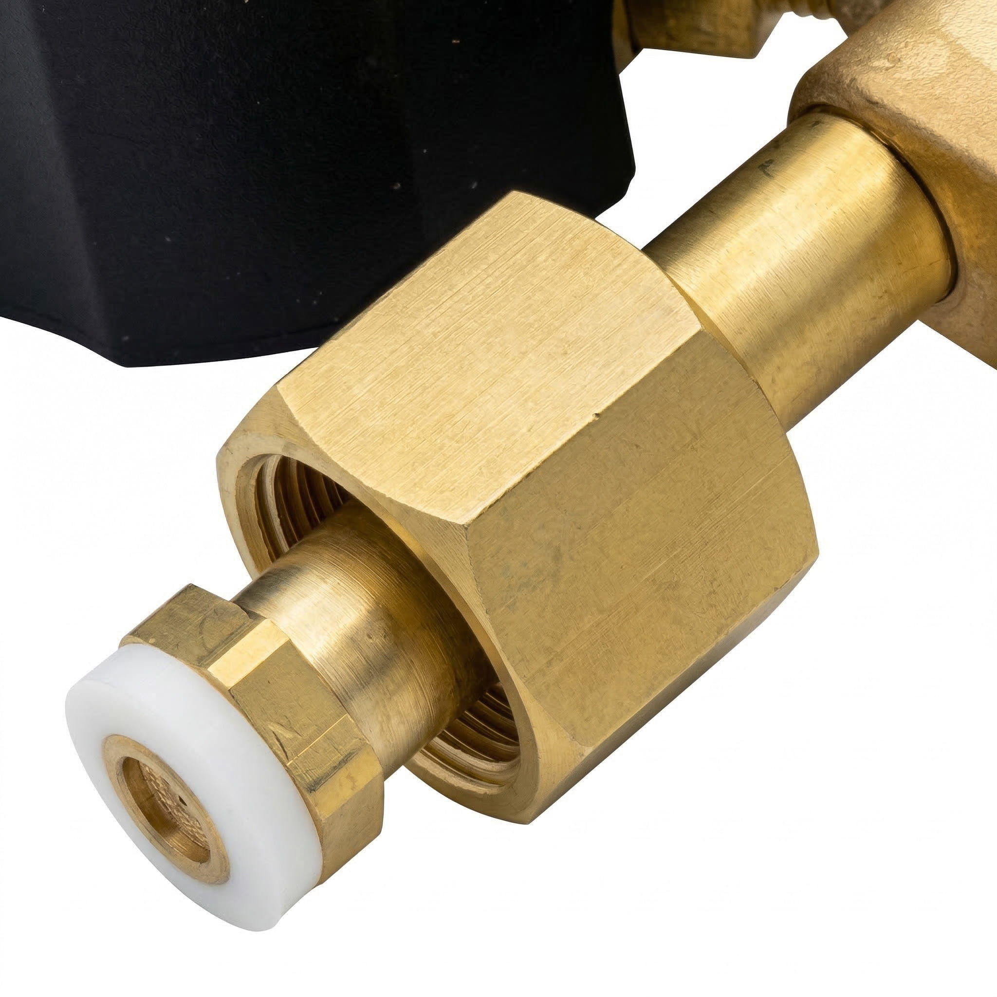 Il set include inoltre un adattatore SAE 1/4", che consente il collegamento diretto del riduttore a tubi e dispositivi standard utilizzati nella climatizzazione e nella refrigerazione (ad es. gruppi manometrici HVAC). In questo modo è possibile immettere azoto nell’impianto in modo rapido e a tenuta senza dover utilizzare adattatori aggiuntivi.