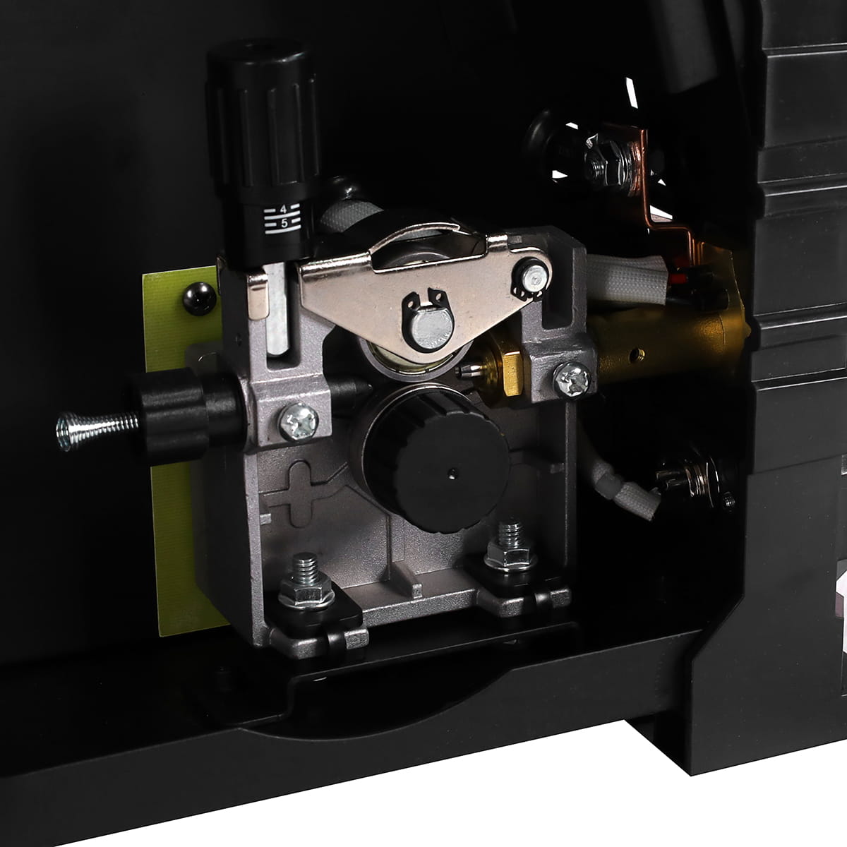 Grazie alla possibilità di cambiare polarità, consente la saldatura sia con gas di protezione sia con filo animato (FLUX) senza gas. Il dispositivo è compatibile anche con torcia tipo Spool Gun (bobina D100 – opzionale).