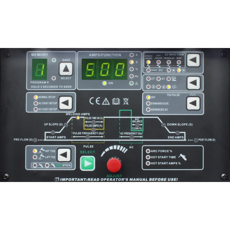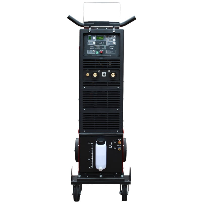 L'unità top di gamma stabilisce nuovi standard tra i saldatori AC/DC e il pannello di controllo intuitivo garantisce la selezione di tutti i parametri operativi necessari. L'attrezzatura standard include una torcia TIG ARC TORCHOLOGY T5W raffreddata a liquido con un'amperaggio di 550 A CC e 380 A CA al 100% del ciclo di lavoro.